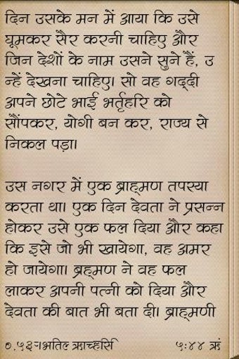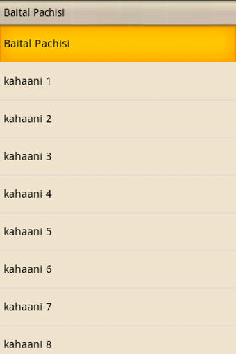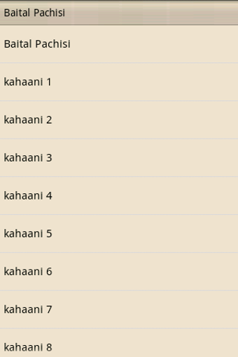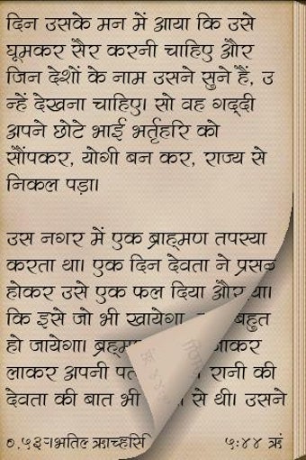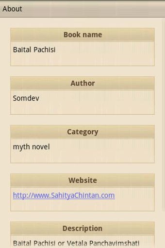 Baital Pachisi dalam bahasa Hindi adalah kisah India yang telah diadaptasi ke banyak bahasa India. Dalam aplikasi ini, kami menyajikan cerita dalam bentuk rangkaian bingkai. Idenya adalah membuat cerita lebih menarik dengan menggunakan metode ini.